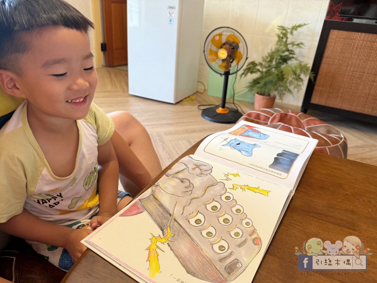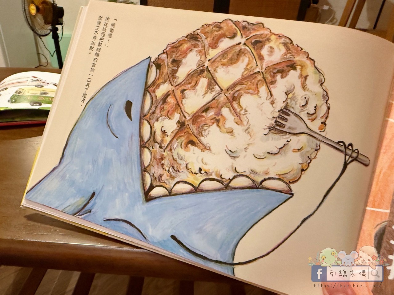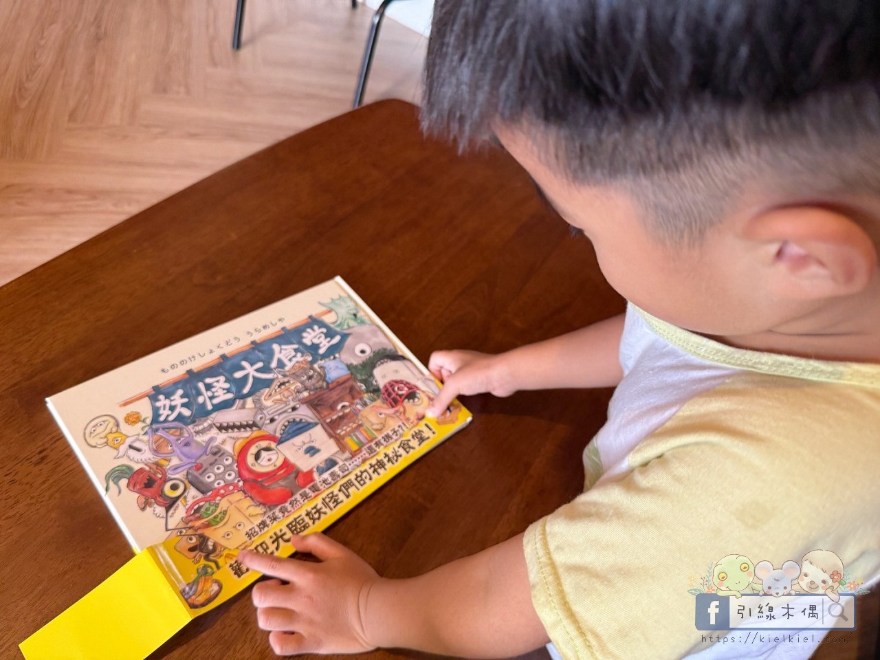 夜裡,啾啾聽我說今天的故事叫《妖怪大食堂》時,眼睛立刻亮了起來。他原本以為「妖怪」會是可怕的那種,結果發現這些妖怪其實一點也不可怕,還超可愛。