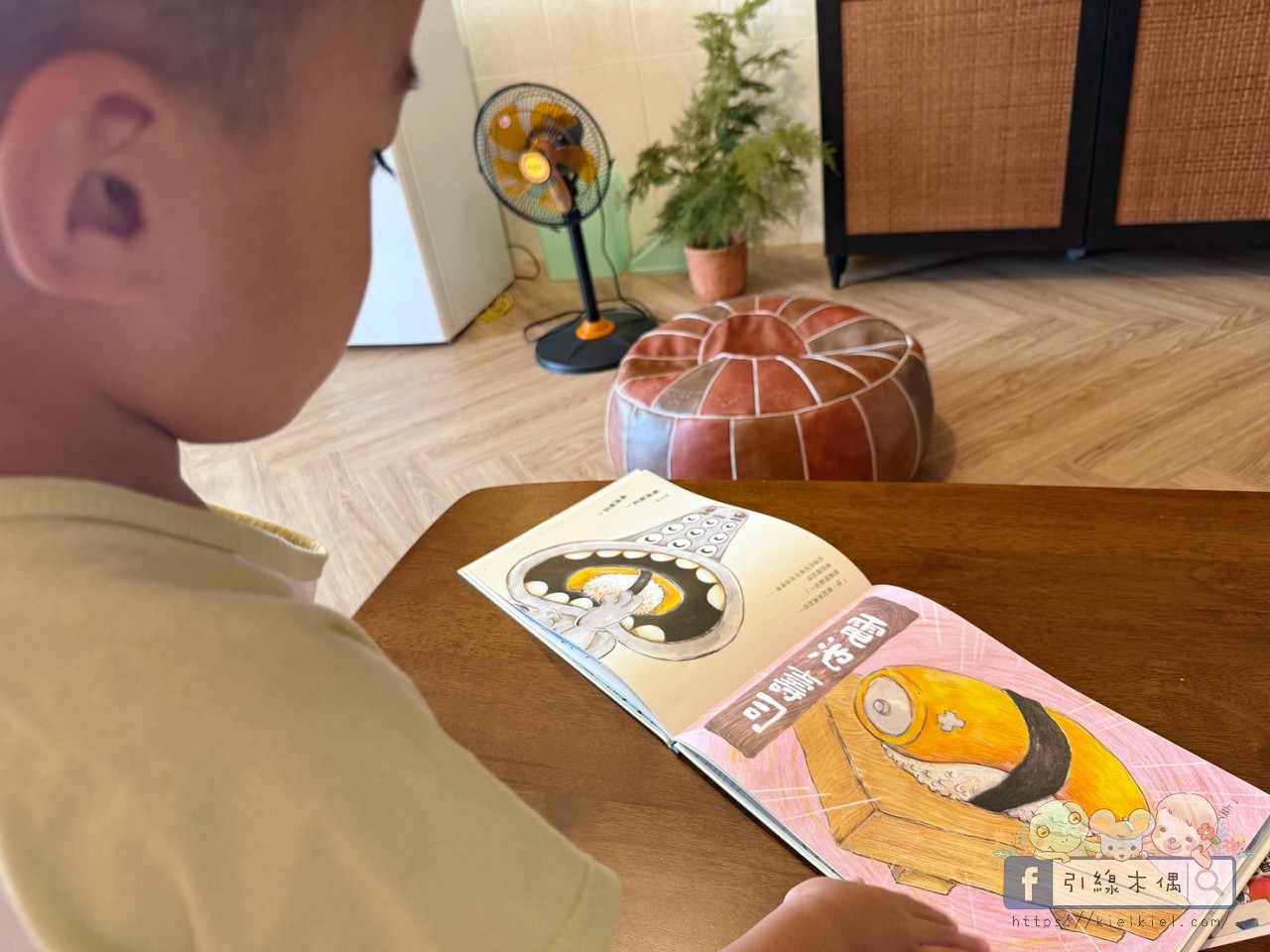 我負責「配音師」,啾啾負責「點菜」,他最愛點的就是「電池壽司」。讀著讀著,他邊笑邊模仿妖怪吃東西的聲音,感受故事的節奏感與聲音樂趣,我們一起發明了屬於自己的深夜食堂。