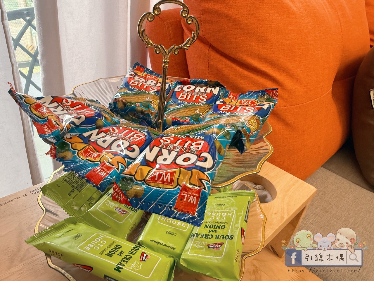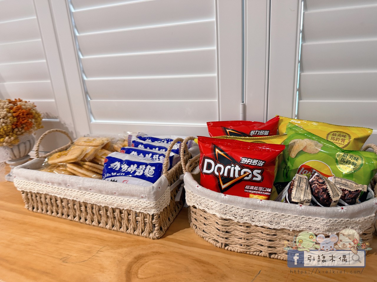 《徐徐民宿》提供免費取用的零食點心,多到像小型便利商店!客廳、沙發區都放著一籃籃餅乾,兩層樓的內容還不一樣,大家交換著吃超有趣。鹹甜都有,從爆米花、餅乾、科學麵到燕麥棒、仙貝,光是挑選就讓孩子開心得不得了。冰箱裡也貼心準備了罐裝紅茶、舒跑、麥茶等飲料,連袋裝衛生冰塊都先幫你備好。