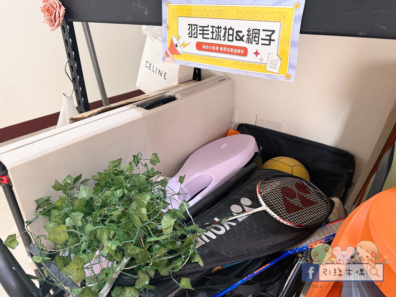 《徐徐民宿》的一樓工作區就像小型遊樂倉庫,羽毛球拍、飛盤、各式球類一應俱全,孩子們一下樓就被吸引過去。前院空間夠大,無論是跑跳、丟球還是玩飛盤都很安全,長輩們坐在搖椅上看著,也能一起享受那份熱鬧的氣氛。