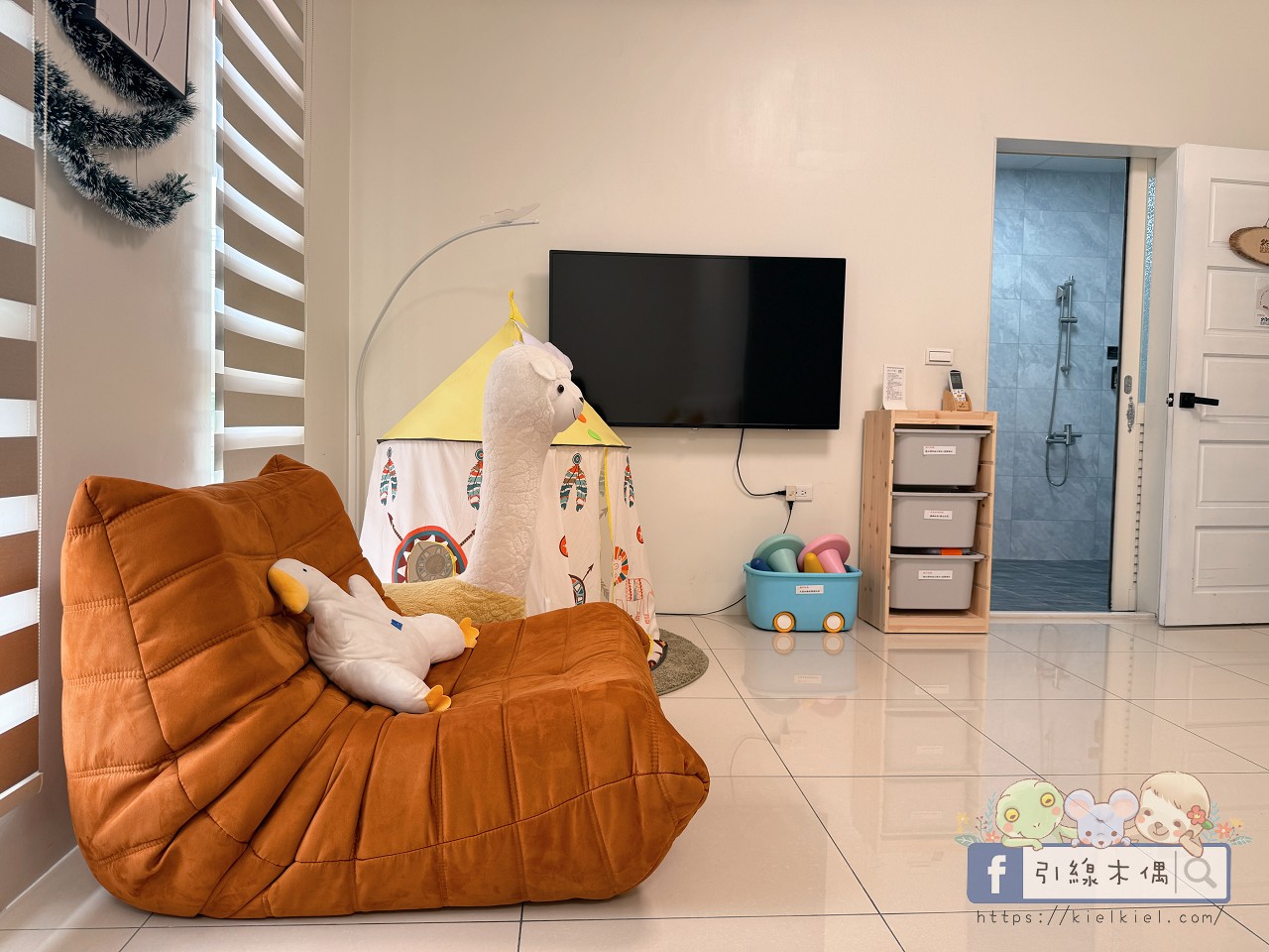 最讓孩子們眼睛發亮的,是《徐徐民宿》貼心準備的玩具。從積木、益智拼圖、家家酒到小車車應有盡有,每一層樓都設有玩具櫃,讓小孩怎麼玩都不膩。三樓客廳還有可愛的溜滑梯,小朋友一到就衝上去玩不停;二樓203房則有溫馨的小帳篷,成了孩子們的「秘密基地」。