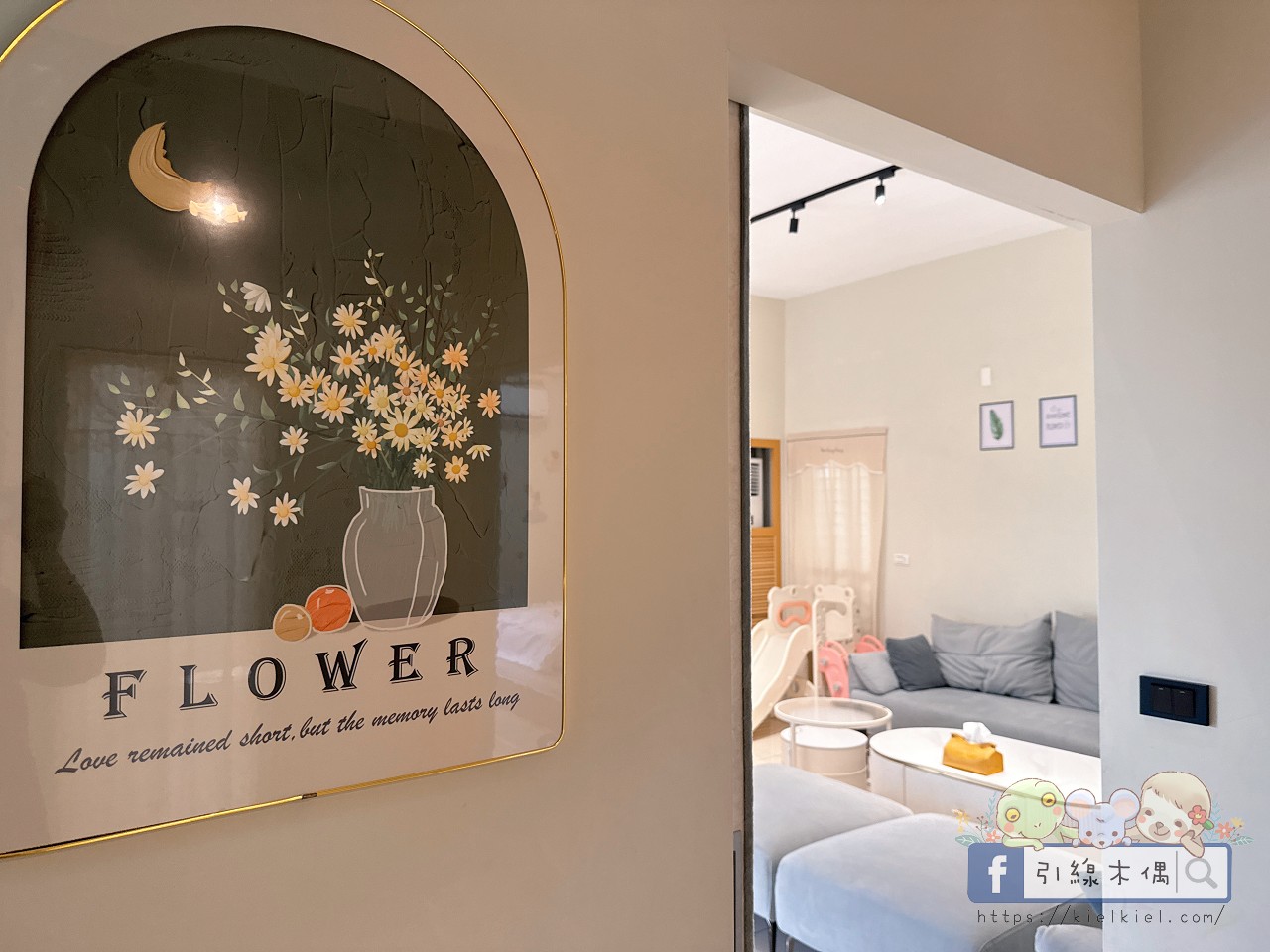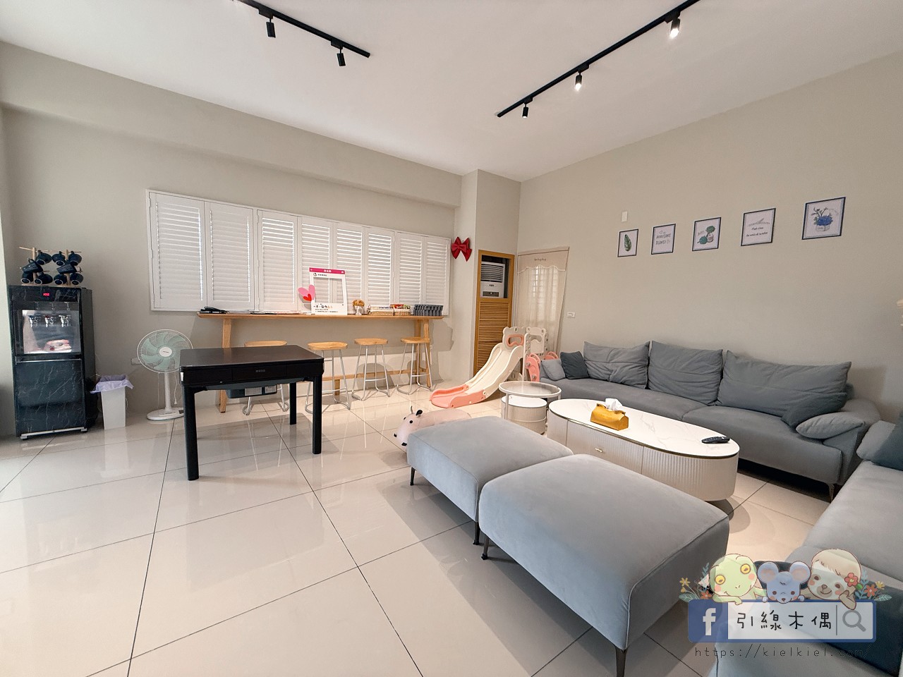 《徐徐民宿》整個空間比想像中還大,淡灰色沙發一字排開,舒服得讓人一坐下就不想起來。孩子們一看到角落的溜滑梯立刻眼睛發亮,大人聊天、小孩玩耍,完全不怕吵到彼此,是那種能讓全家人都放鬆的公共空間。