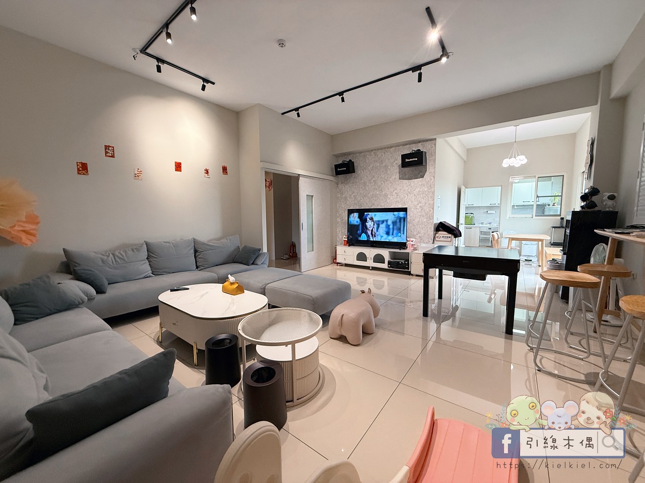 每層樓都有客廳、陽台與廚房,動線分明又彼此連結,無論是長輩泡茶、小孩玩耍,或朋友聚會聊天,都能各自愜意、又自在交流。從電梯、KTV到滿滿的玩具、零食與戶外球具,設施多元又貼心。大人放鬆、小孩放電,夜裡還能唱歌、聊天,連平凡的日常都被包裹成一場溫柔又歡樂的假期。