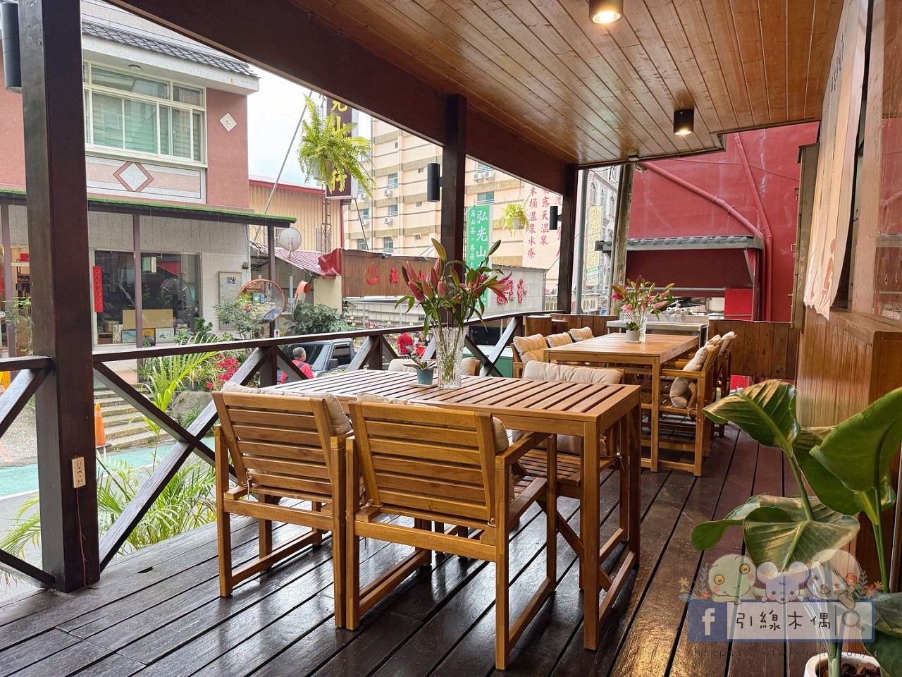 最喜歡的是靠窗那塊木造庭景區,剛好能看到老街與山景交錯,坐在這裡等家人、整理行李,或是單純放空,都有種旅程正式開始了的儀式感。午後的陽光照進來時,光線柔柔的、暖暖的,打在木頭上特別好看,空間也因此多了幾分寧靜的暖意。