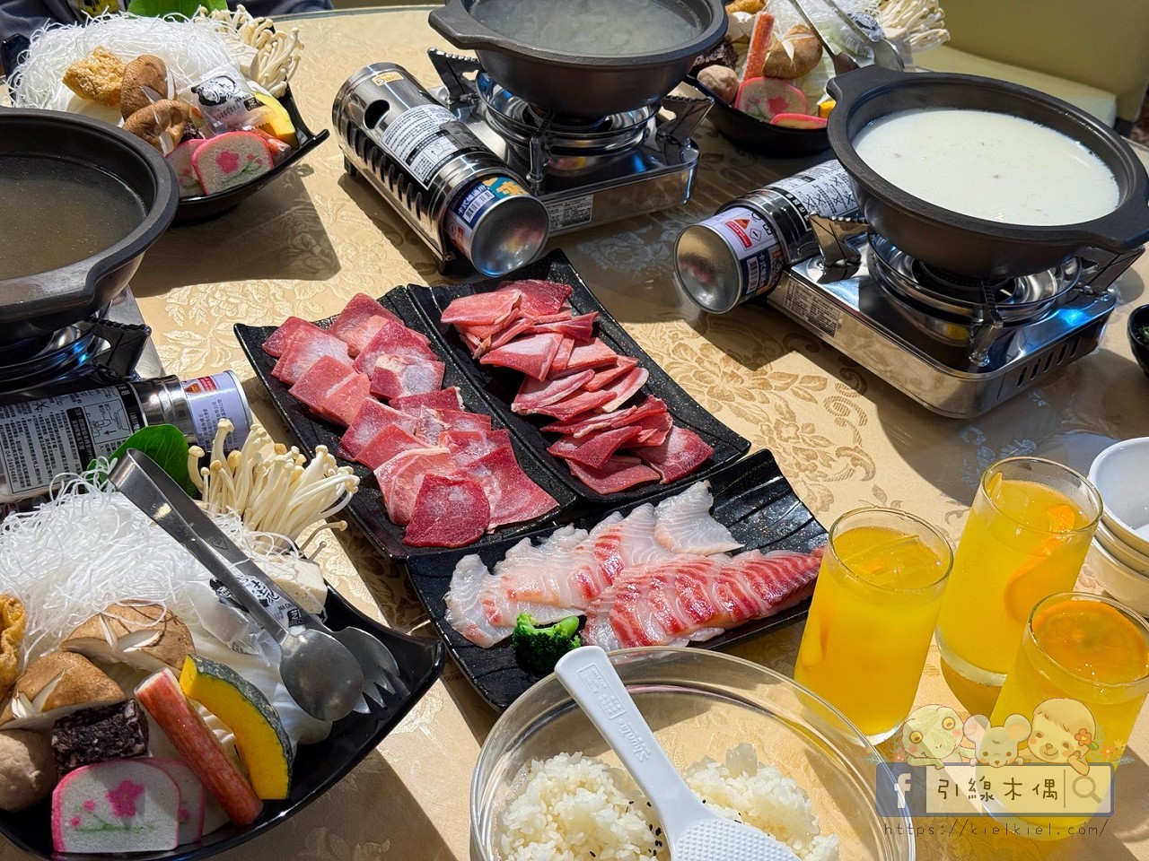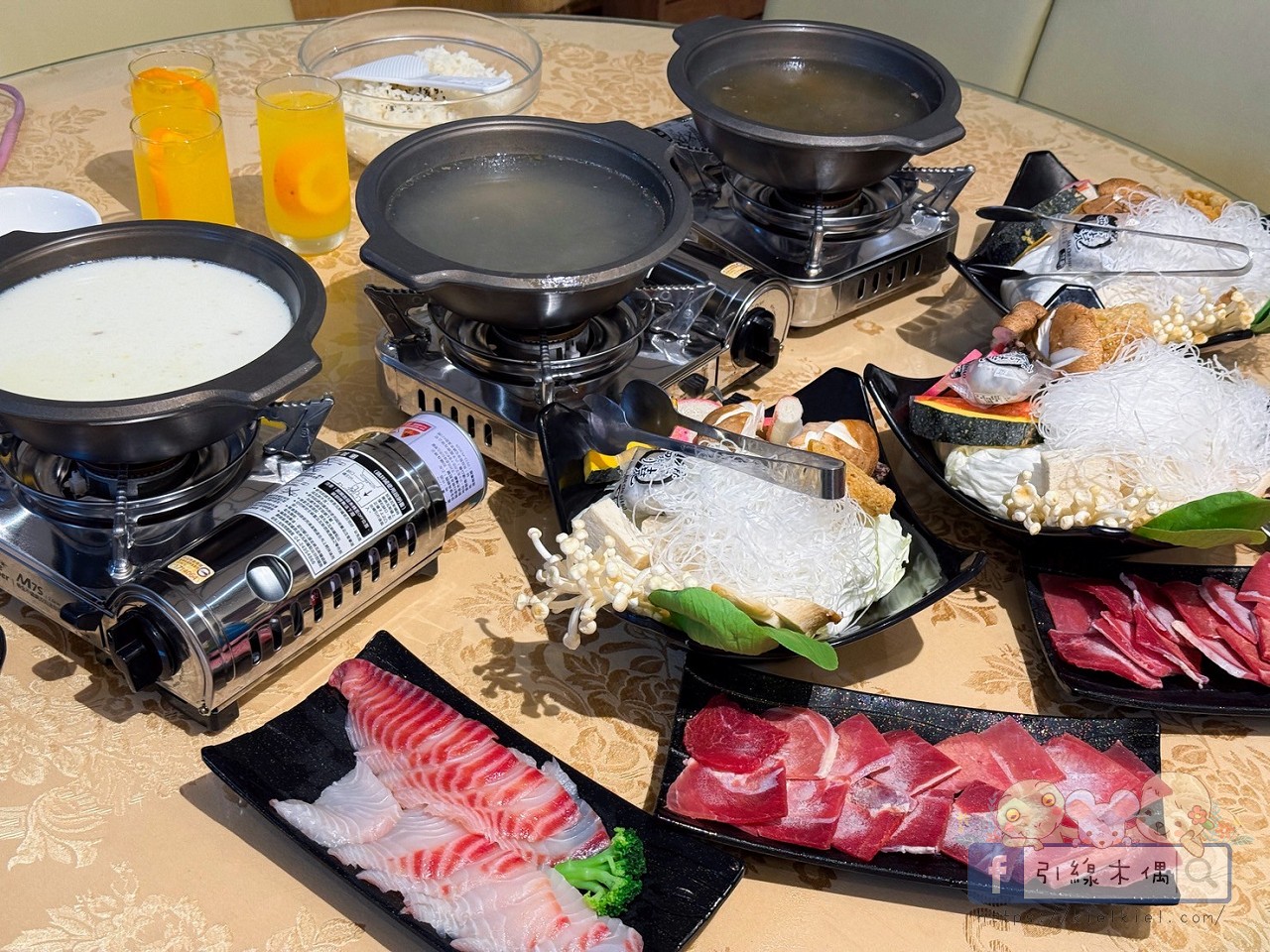 我們當晚點了剝皮辣椒鍋、牛奶鍋與原味鍋。湯頭各有特色:剝皮辣椒鍋微辣、帶點甜韻,很適合山裡的冷空氣;牛奶鍋濃香順口、啾啾超喜歡;原味鍋清爽耐吃,煮任何食材都剛剛好。火鍋的肉品與魚片份量扎實美味,菜盤同樣誠意十足,有餃類、香菇、南瓜、冬粉與多種蔬菜,視覺上豐盛、吃起來也均衡。