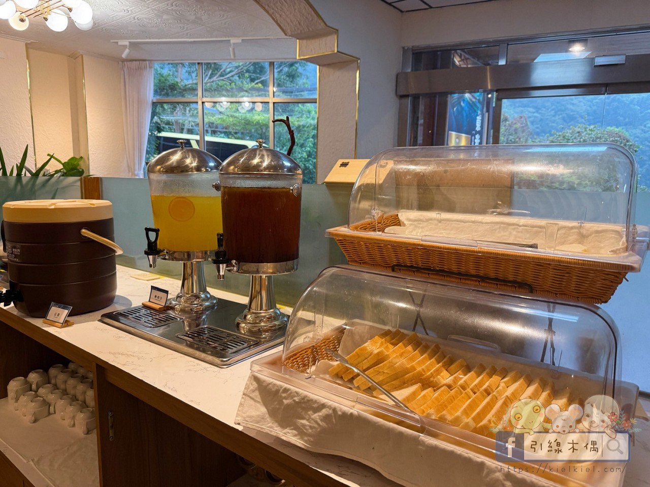 飲品選項同樣貼心,果汁、咖啡、紅茶和豆漿一應俱全,對親子家庭尤其方便。誠意滿滿、份量充足,吃完會覺得身心都被照顧得很好。用餐時,窗外的雲霧尚未散開,山景像是一幅正在甦醒的畫。陽光透過大片玻璃灑進室內,光線柔和而安靜,每張桌上都彌漫著一種慢慢醒來的溫度。很自然地覺得,今天將會是被山林好好擁抱的一天。