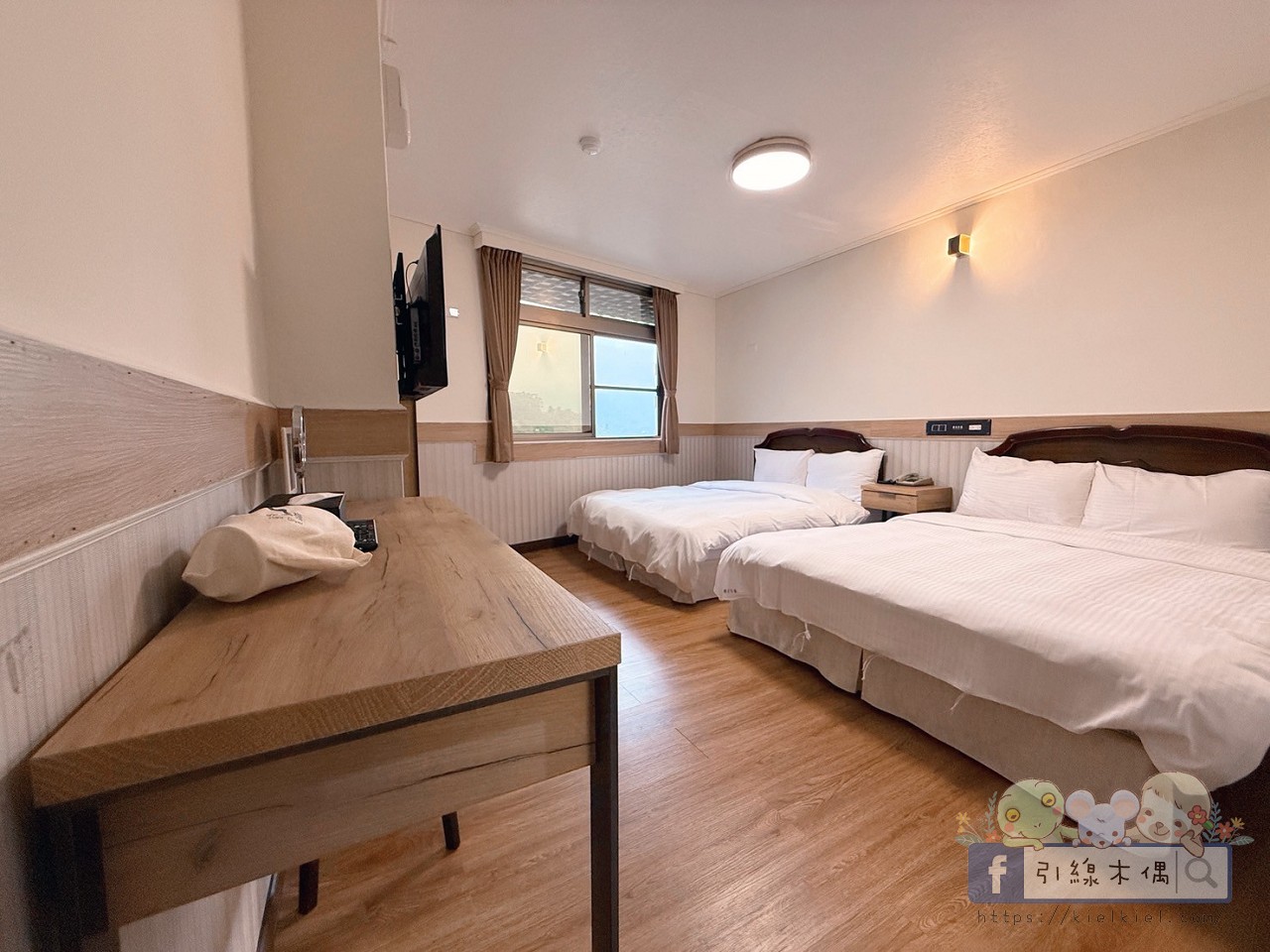 《東光行旅》全新翻修過的房間,木質地板帶著淡淡檜木香,房內是溫柔的木質調,搭配米色壁面,看起來有點像北歐鄉村風,也有點像被太陽曬過的木屋,舒服得讓人想直接窩著不動。