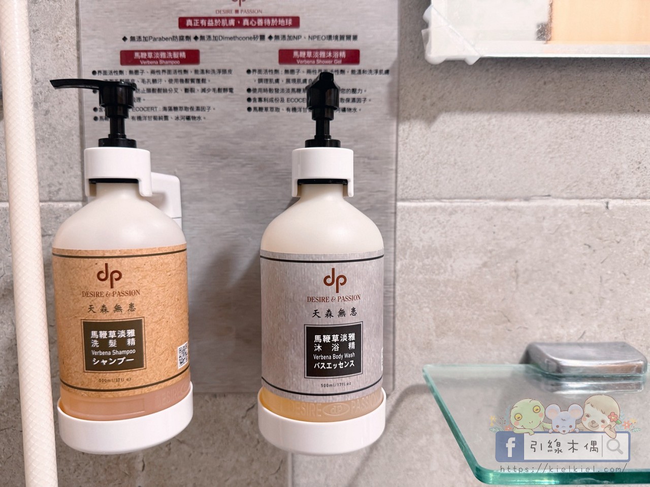 洗沐用品使用的是 DP 天森無患的馬鞭草系列,味道很自然,帶著草本的清香。泡完湯、再用這組洗沐沖掉一身蒸氣後,身體感受充分放鬆的輕盈。小小的衛浴空間卻把療癒做到滿分,讓旅程多了幾分被好好照顧的感覺。