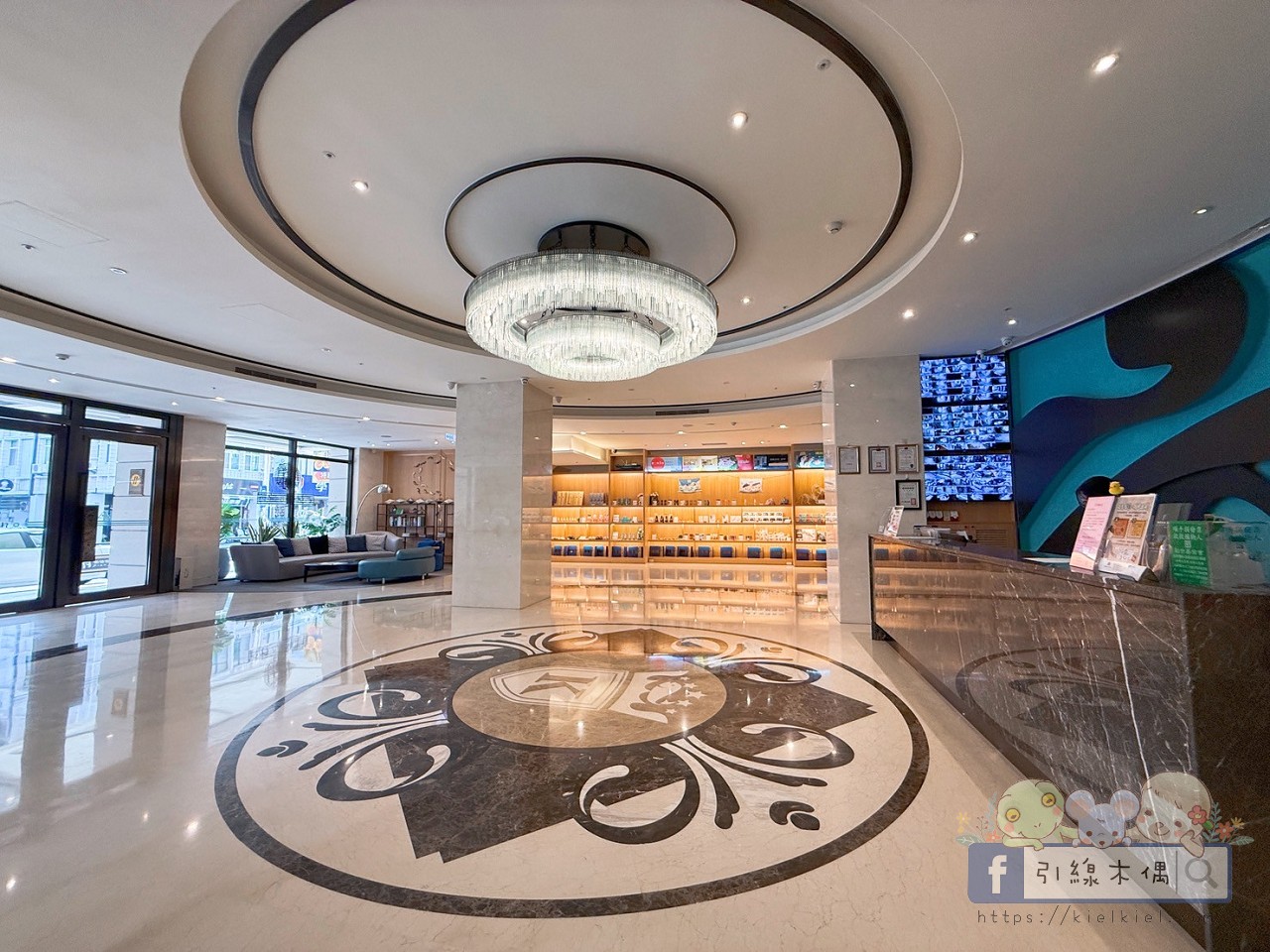 《鮪魚家族高雄館》的大廳,第一眼就會被那股明亮的氣氛吸引。大片落地窗迎進街景與陽光,白色大理石地板乾淨得能映出倒影,空間流動著一種輕盈的節奏。中央圓形花紋的地磚在吊燈的光影下閃閃發亮,像是一種儀式感,宣告旅程正式開始。