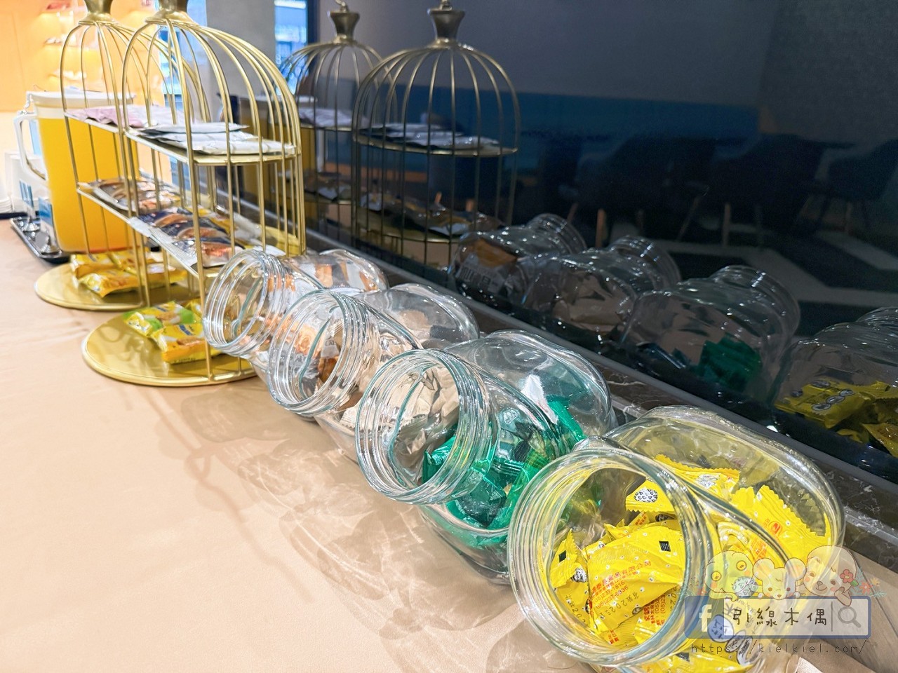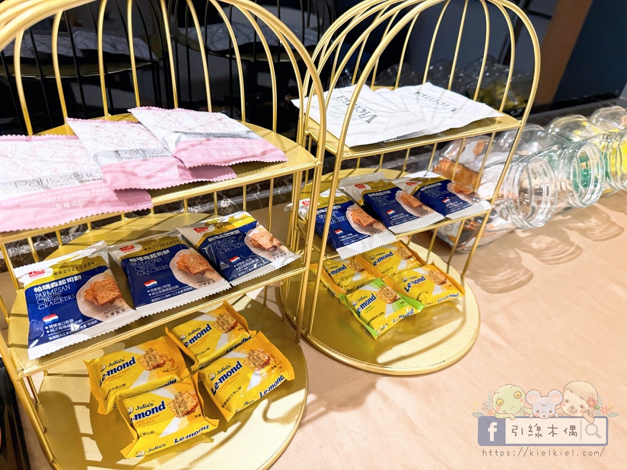 下午兩點到六點,大廳會擺上迎賓點心。柳橙汁、紅茶、十幾種餅乾整齊排成一列,讓人一走近就覺得心情變甜。啾啾挑了幾塊餅乾坐下,我倒了一杯柳橙汁。落地窗陽光柔柔的,灑在桌面上,整個午後像被輕輕裹進糖霜裡,靜靜的、甜甜的,成了旅程裡最柔軟的小插曲。