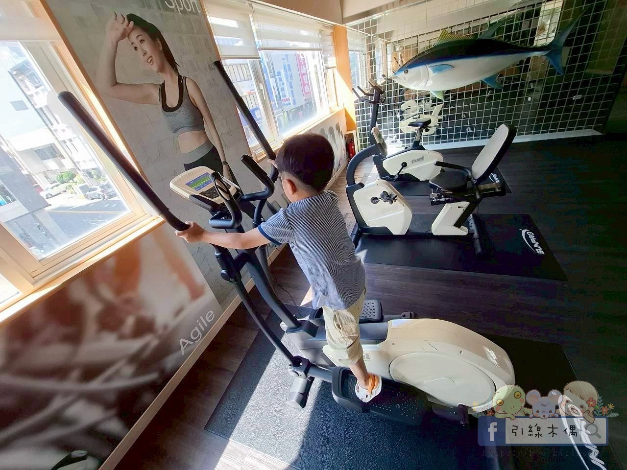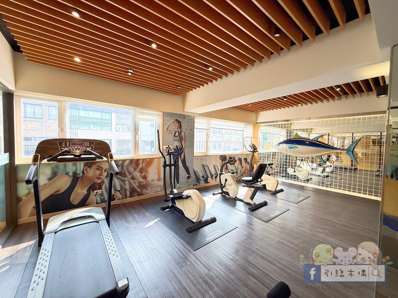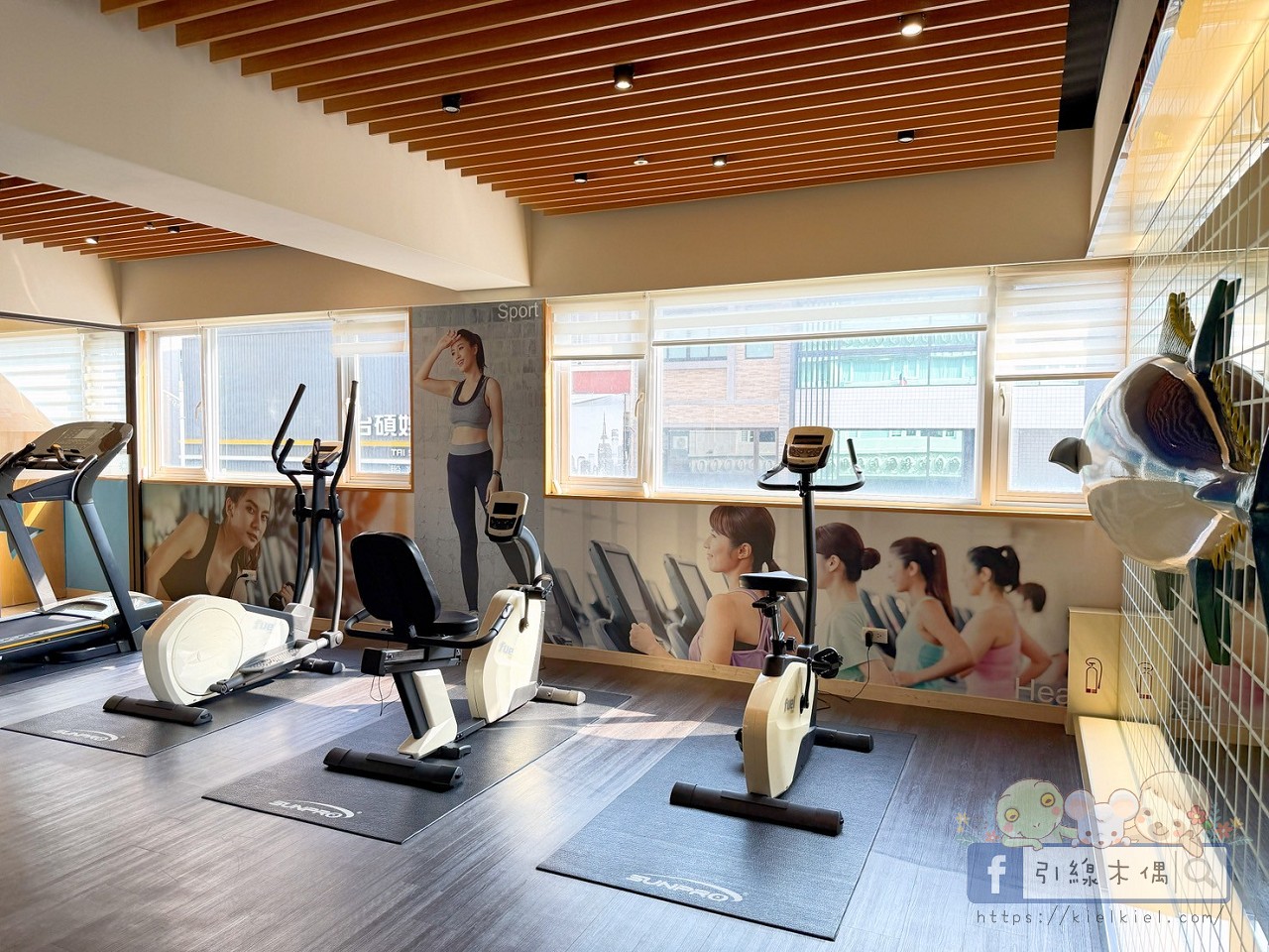 對想維持運動習慣的旅人來說,健身房是一個讓節奏放慢又不失能量的角落。落地窗外是高雄街景,騎著腳踏車或慢跑時,看著城市緩緩流動,心情也變得輕盈。