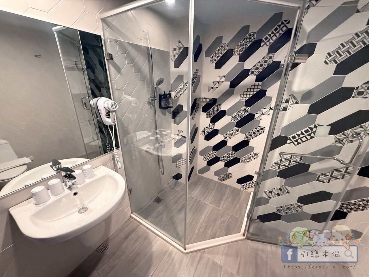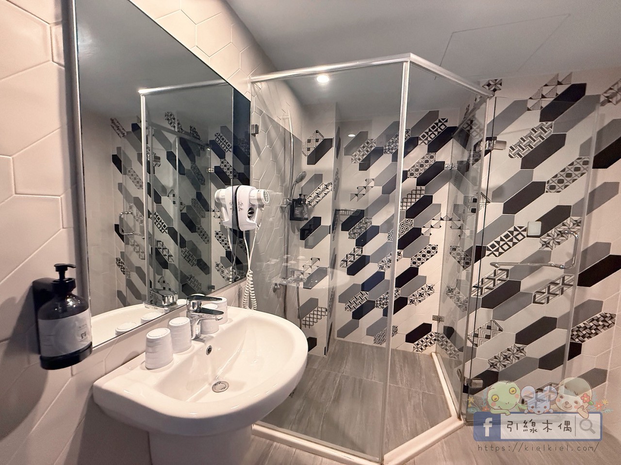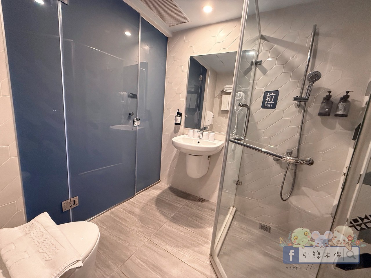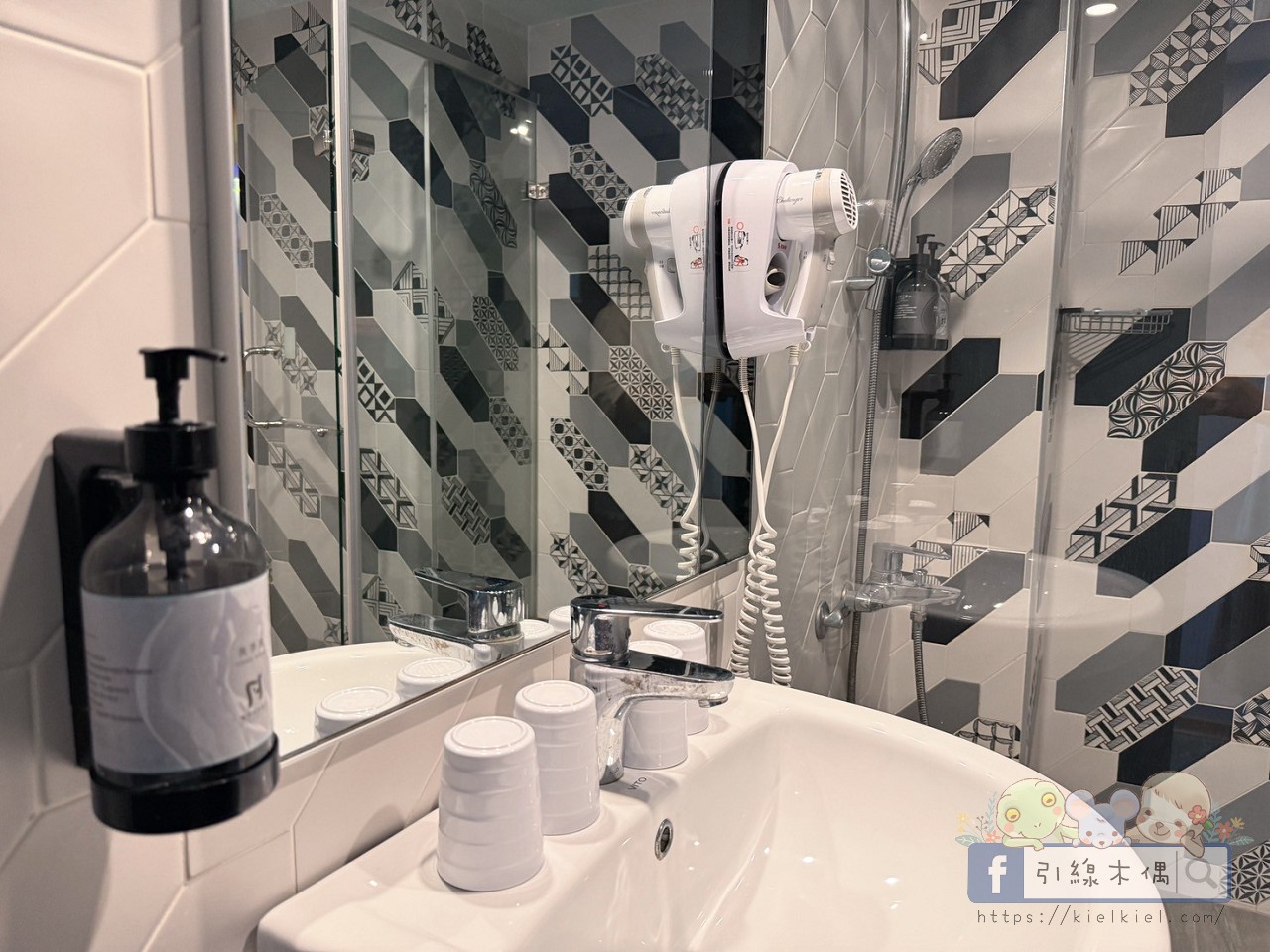 洗沐用品採用自家品牌的洗髮沐浴合一與潤髮乳,香氣淡雅自然,洗後頭髮滑順不乾澀。鏡面與洗手台保持得明亮如新,毛巾摺得整整齊齊,從細節能感受到旅宿的用心。這樣乾淨俐落又帶溫度的衛浴空間,讓人每次梳洗都覺得放鬆。