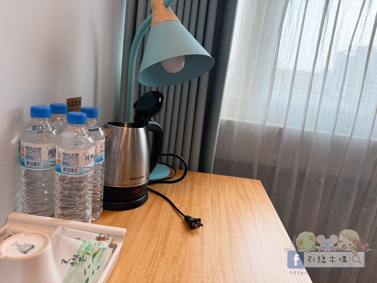 房內的設施齊全,電視、冰箱、茶包、咖啡與瓶裝水一應俱全,還有一張溫潤色調的書桌。啾啾最喜歡窩在床上看電視、吃著迎賓小餅乾;而我則喜歡坐在窗邊,靜靜感受一家人共度的時光。那份安靜的溫柔,是旅行裡最讓人想留住的瞬間。