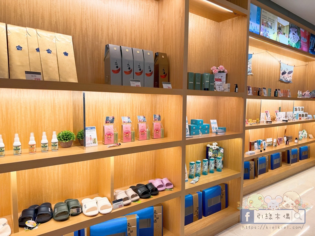 櫃檯後方陳列區就像一座小型購物角落,販售不少特色伴手禮與玩具,適合旅人挑幾樣帶回家。從光線、色調到擺設,整個大廳給人的感覺既典雅又親切,是那種會讓人想在此多停留一會的空間。